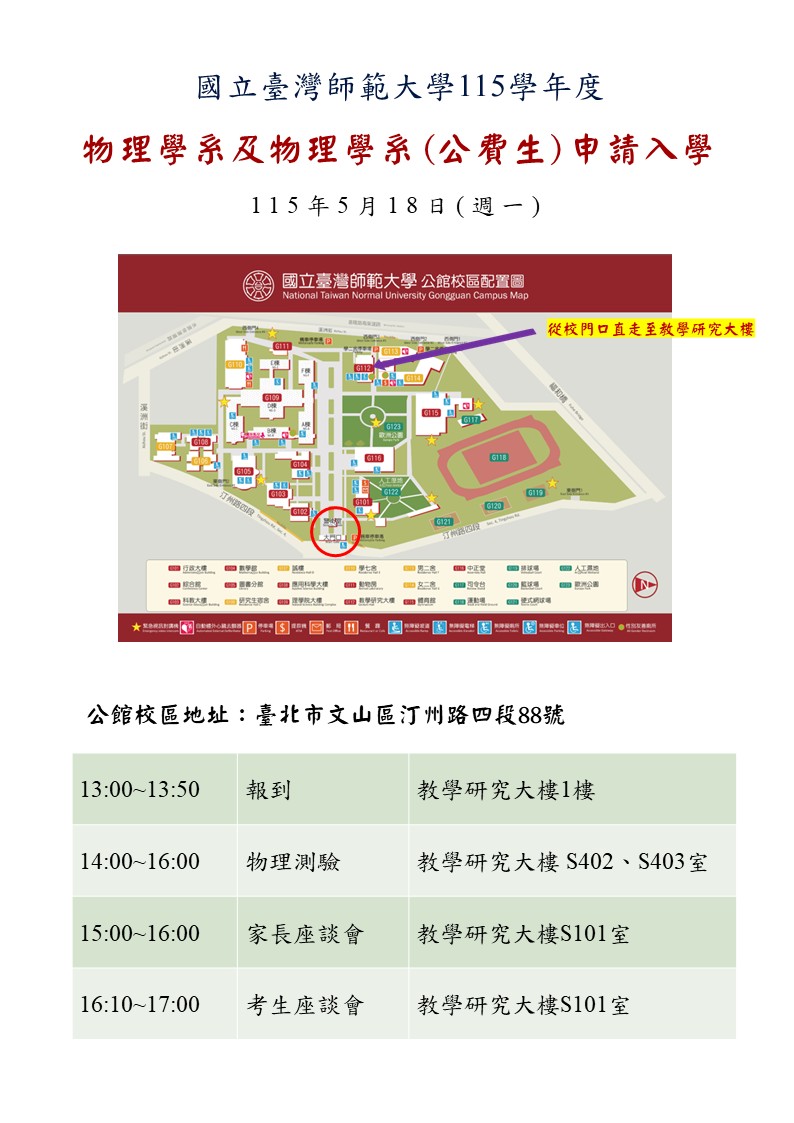 14:00 ~16:00 物理測驗-教學研究大樓S402室及S403室